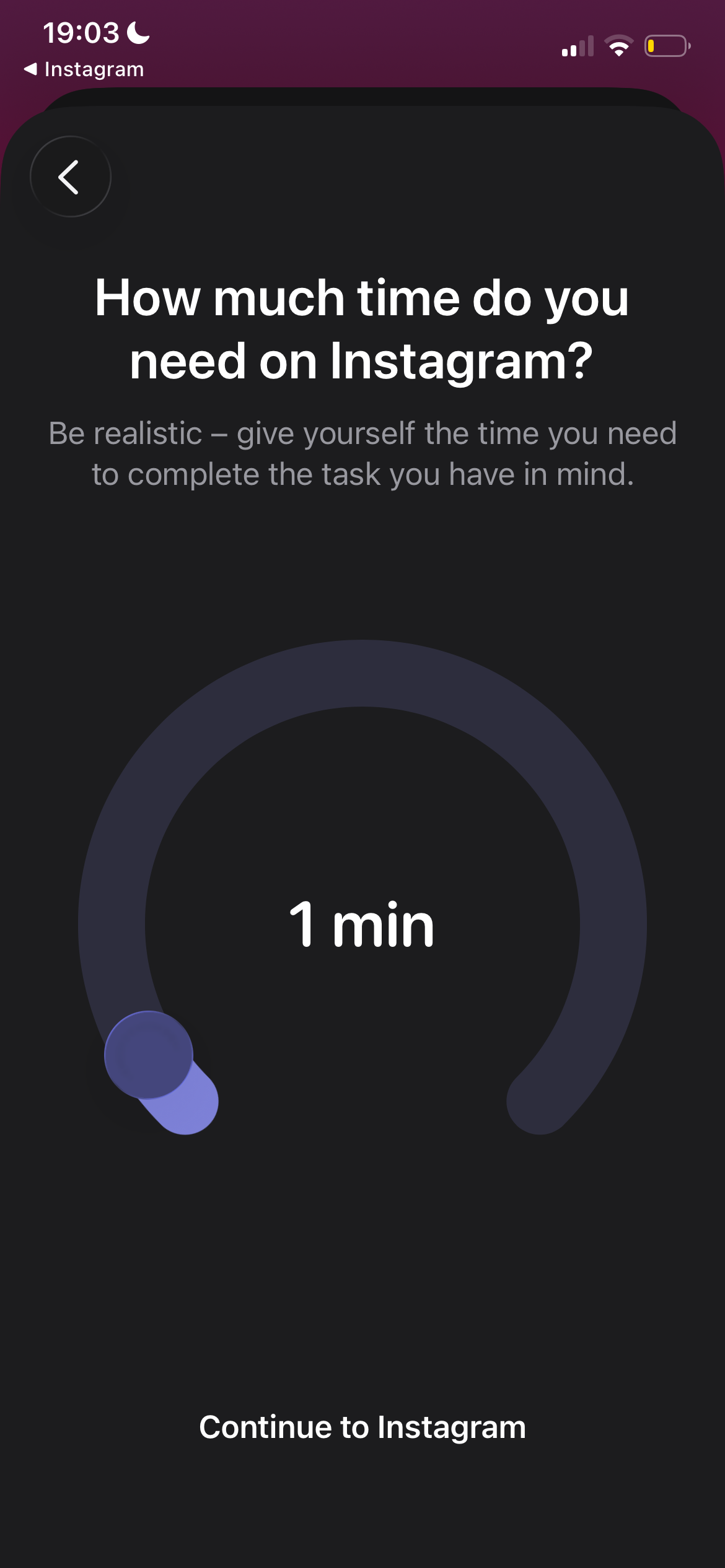 The Intention Tracking Feature will ask you for your intention everytime you continue to open an app after the initial intervention.