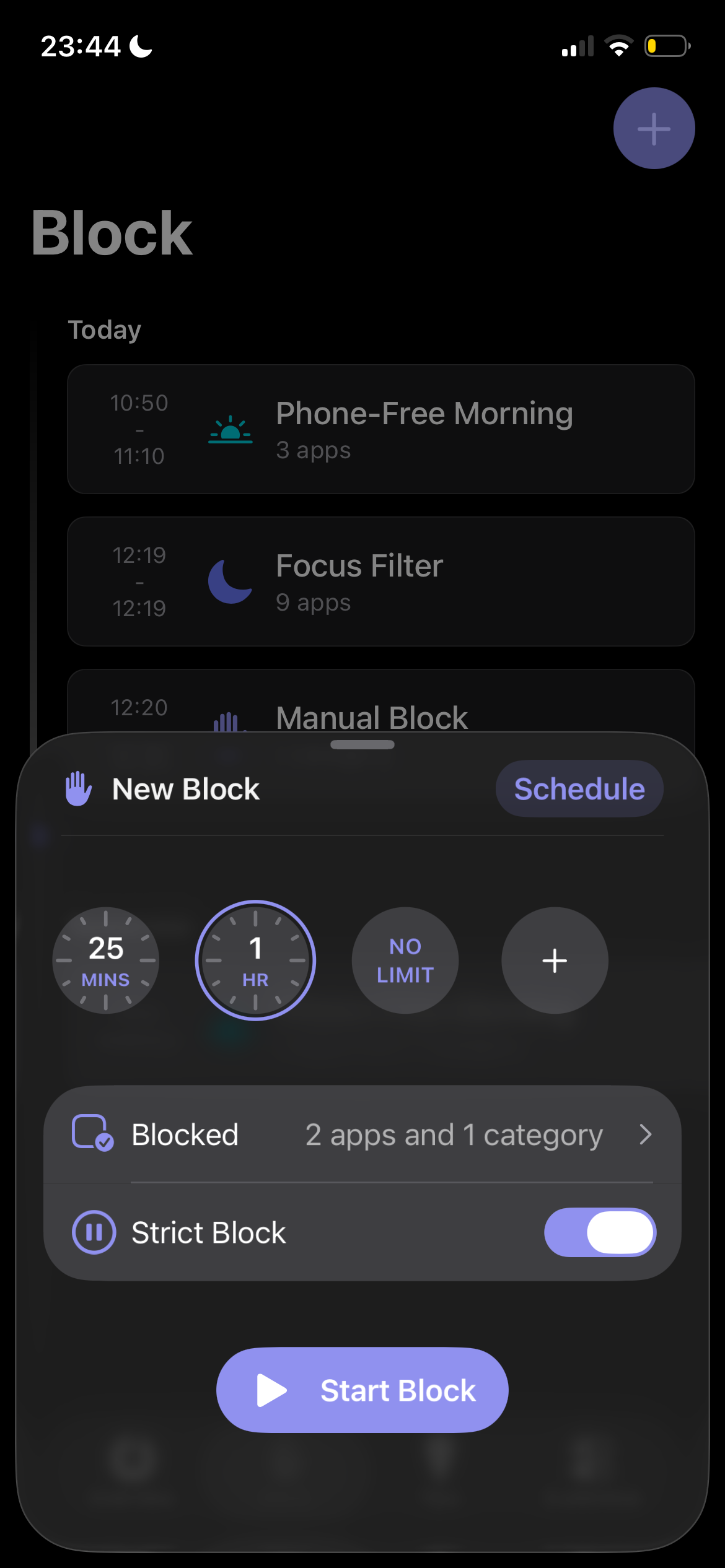 You can use one sec’s focus filter to better adjust (Intervene, Longer Intervention, Block, Don’t intervene) its behavior to those different contexts, like: