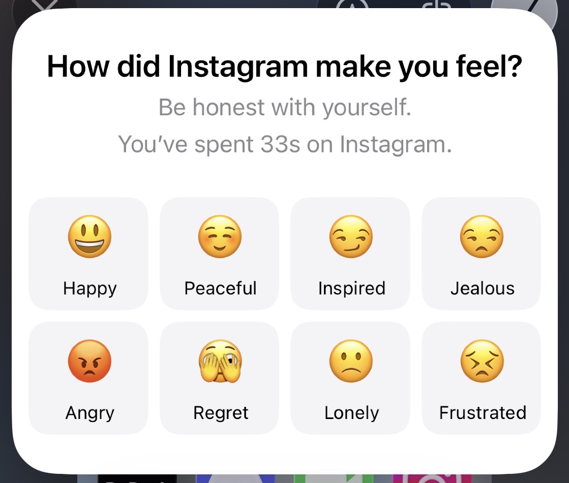 With our emotion tracking feature enabled you will get a notification asking you how you feel after using an app, all info will be saved in Apple Health.