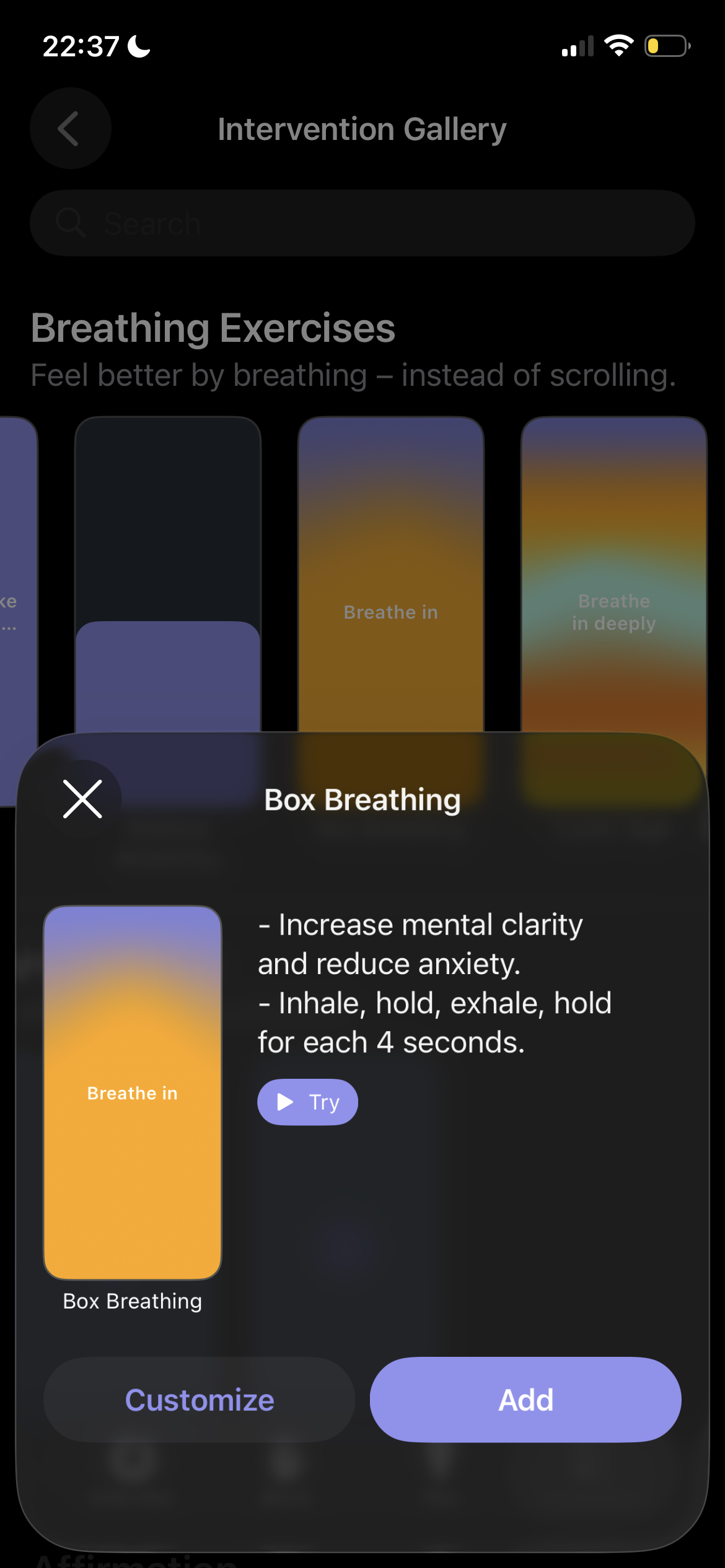 The Journaling feature let journal pop up as intervention. Instead of scrolling, you can process your emotions writing your diary!