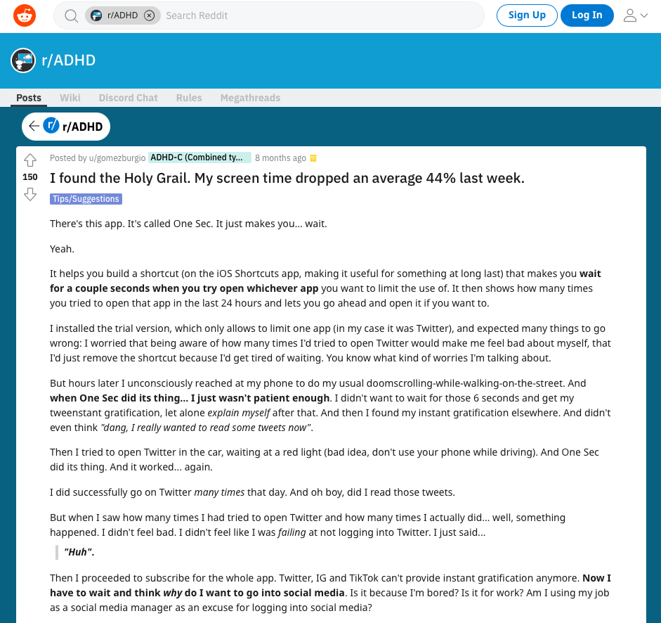 Before stumbling upon this post, I had no idea that one sec could be beneficial for people with an ADHD diagnosis. But it obviously was!