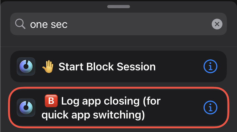 Search for “one sec” and select 🅱️ Log app closing (for quick app switching).