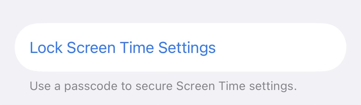 TL;DR: Apple has updated its Screen Time Lock capabilities to apply to one sec as well. Enable it under in iOS Settings -> Screen Time -> Lock Screen Time Settings.
