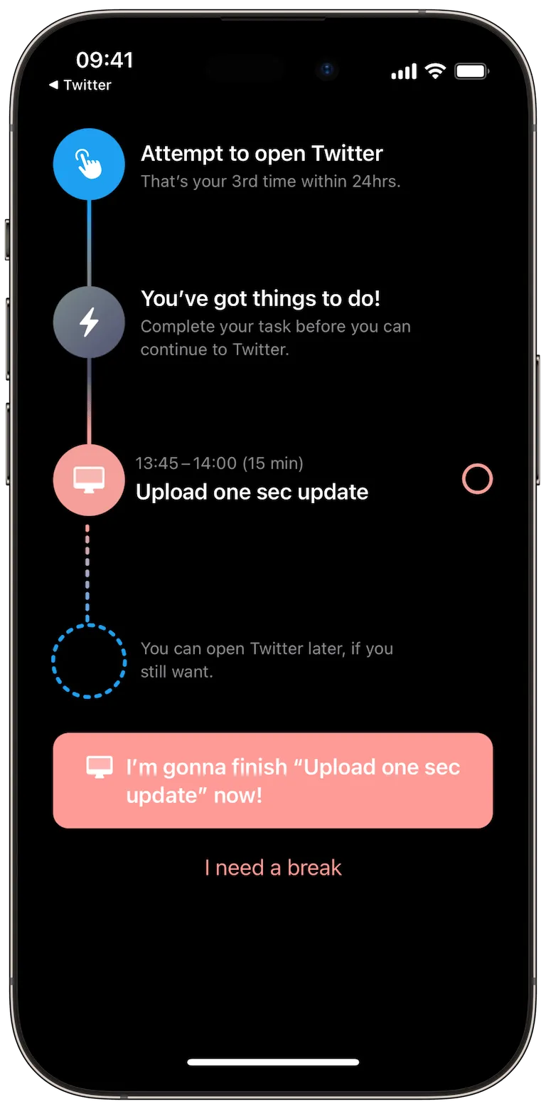 During uncompleted tasks in Structured, one sec won’t allow you to open distracting apps.